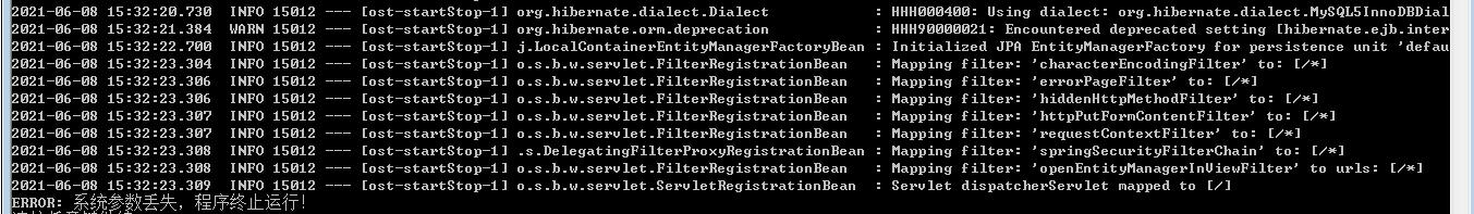 主题 : jeesso 打war包部署时报系统参数丢失,程序终止运行