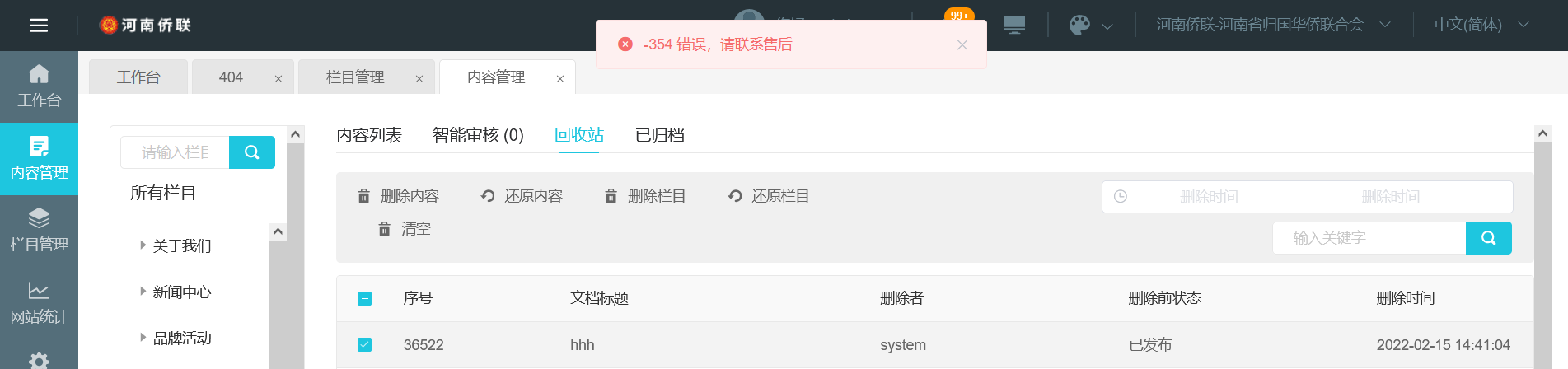我们也不知道怎么复现,每次都是客户反馈我们404,我们才知道的。 还有这个,删除内容为什么删除不了,报这个错误 ![]() |