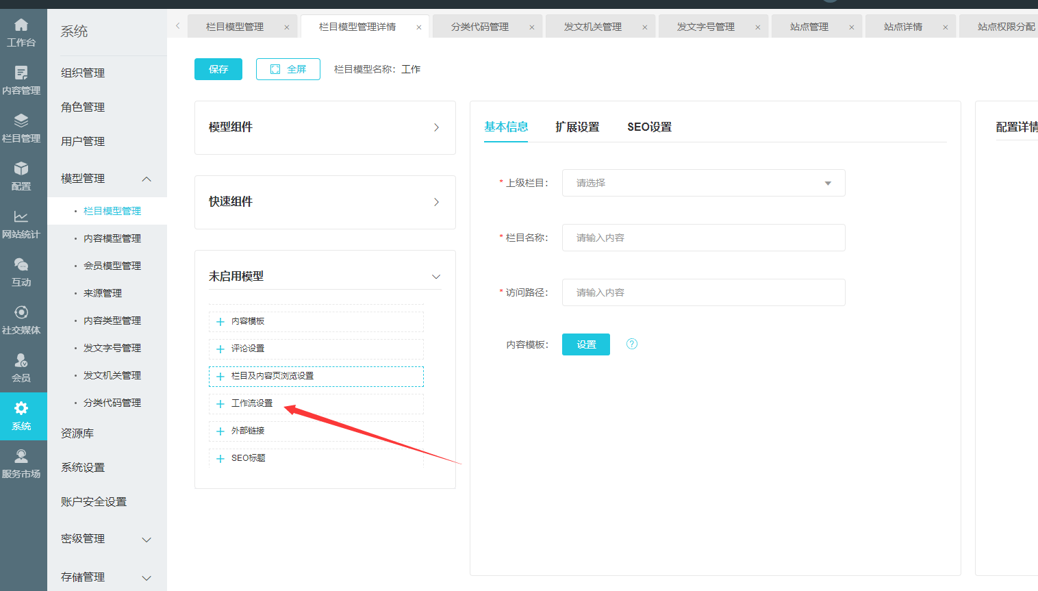 工作流审批设置人员审批了吗?栏目里设置一下工作流