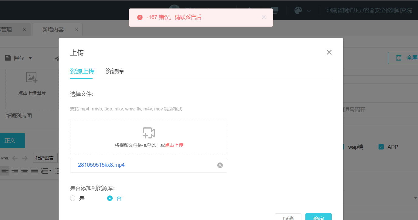 正式服务器上传视频时报这个错误 是什么原因?X1.10 版本 视频大小80M。