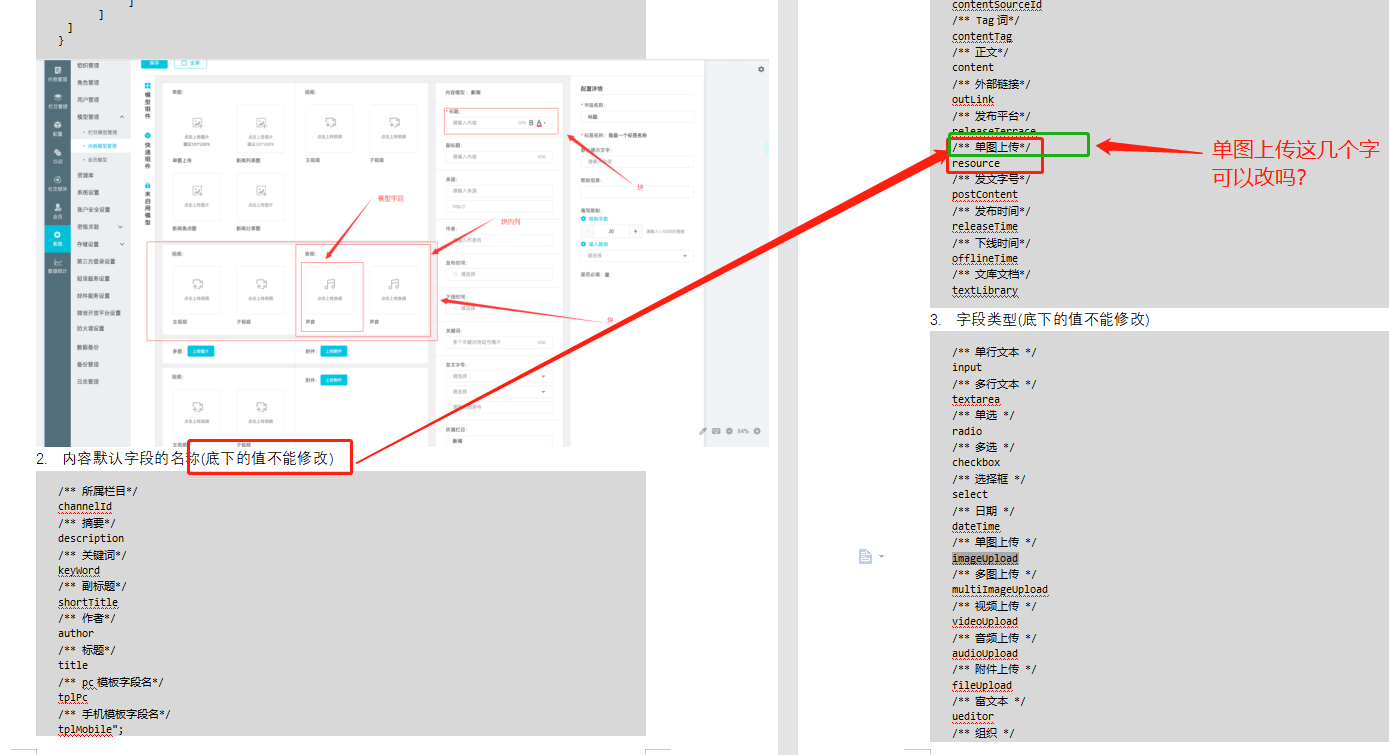 这个系统默认的字段名称改不了,除非去改前端组件的或者改下数据库模型字段的名称