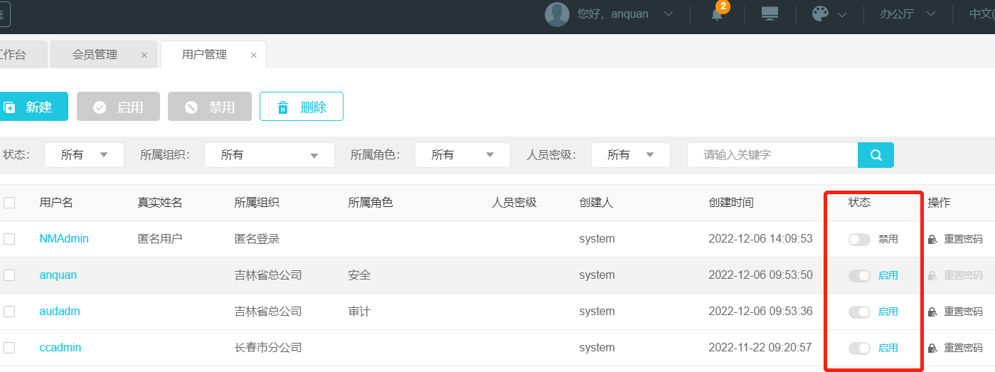 请问针对用户启用禁用应该用哪个角色的账号,我用各个账号都试了,都不好用