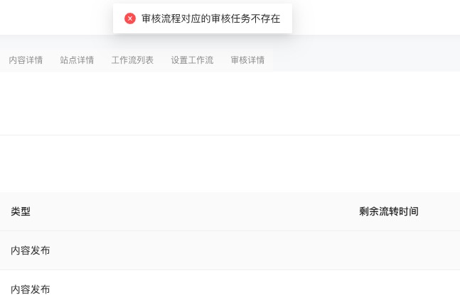 工作流设置两级审核后,第一级审核可以正常审核,到了第二级审核的时候会提示 “审核流程对应的审核任务不存在”
