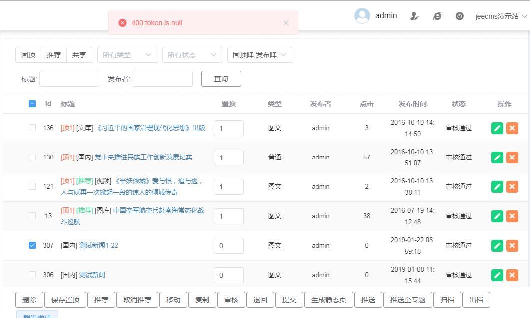 群发消息显示token is null,后台没有报错,日至没有任何异常,有人遇到过这种情况吗?