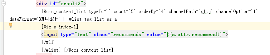 [#if a_index=1] <input type="text" class="recommends" value="${a.attr.recommend!}"> [/#if] [/#list] [/@cms_content_list] |