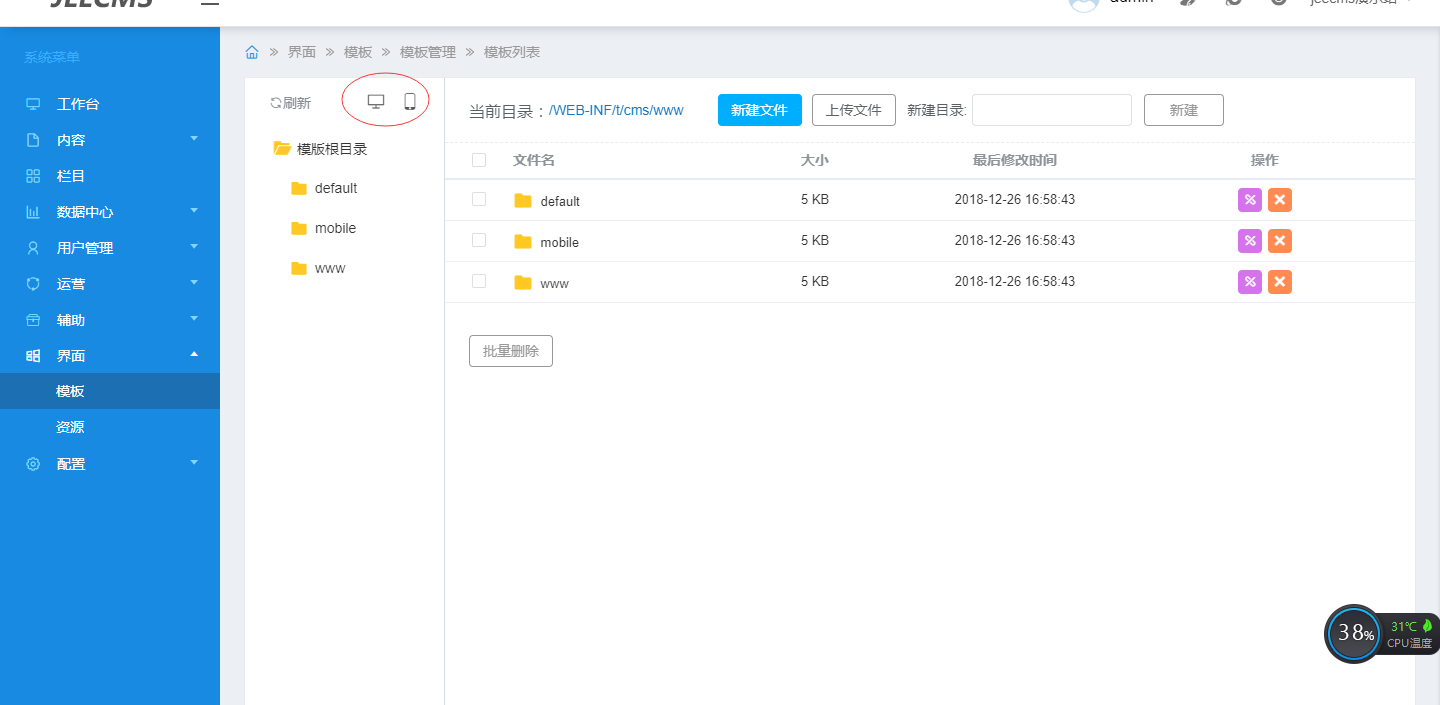 您看我上图圈出来的地方   一个是pc端一个是电脑端您点击进去后可以配置pc端和电脑端的模板的   您只需要配置您需要的模板然后对应栏目信息就可以了