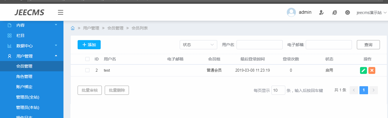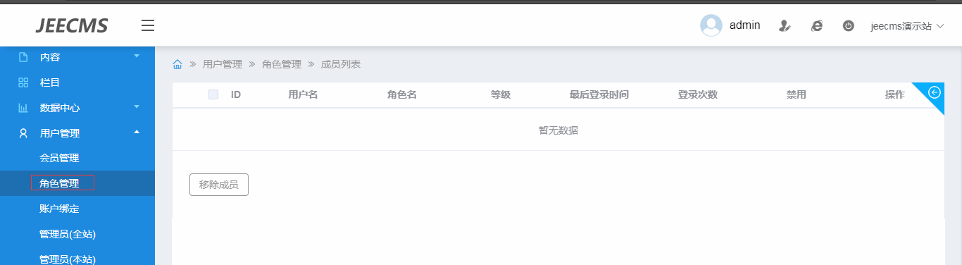 您好   您那里添加的是前台用户    然后角色管理管理的不是您哪个账号