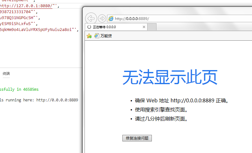 请问我用vs code启动项目后,访问不了是什么原因啊? 我的maven项目后台地址:http://localhost:8080/jeeadmin/jeecms/index.do dev.env.js文件也改了。启动也成功了。但是它给的地址访问不了。 ![]() ![]() |