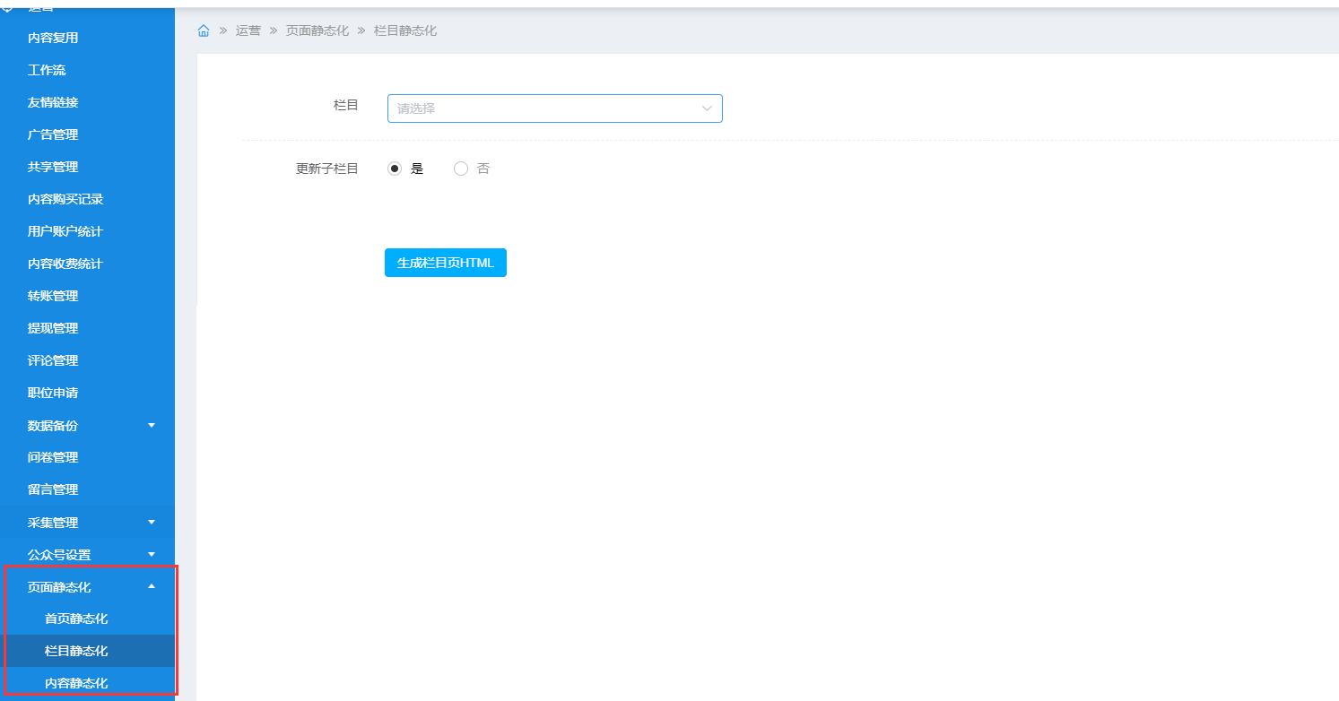 您在去运营内找到静态页生成功能   可以通过这个功能生成对应的静态页
