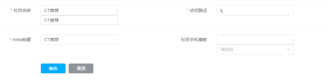 这是我新建的一个栏目,然后访问路径设置的 tj ,但是修改提交之后,为啥访问路径 是CTtj |