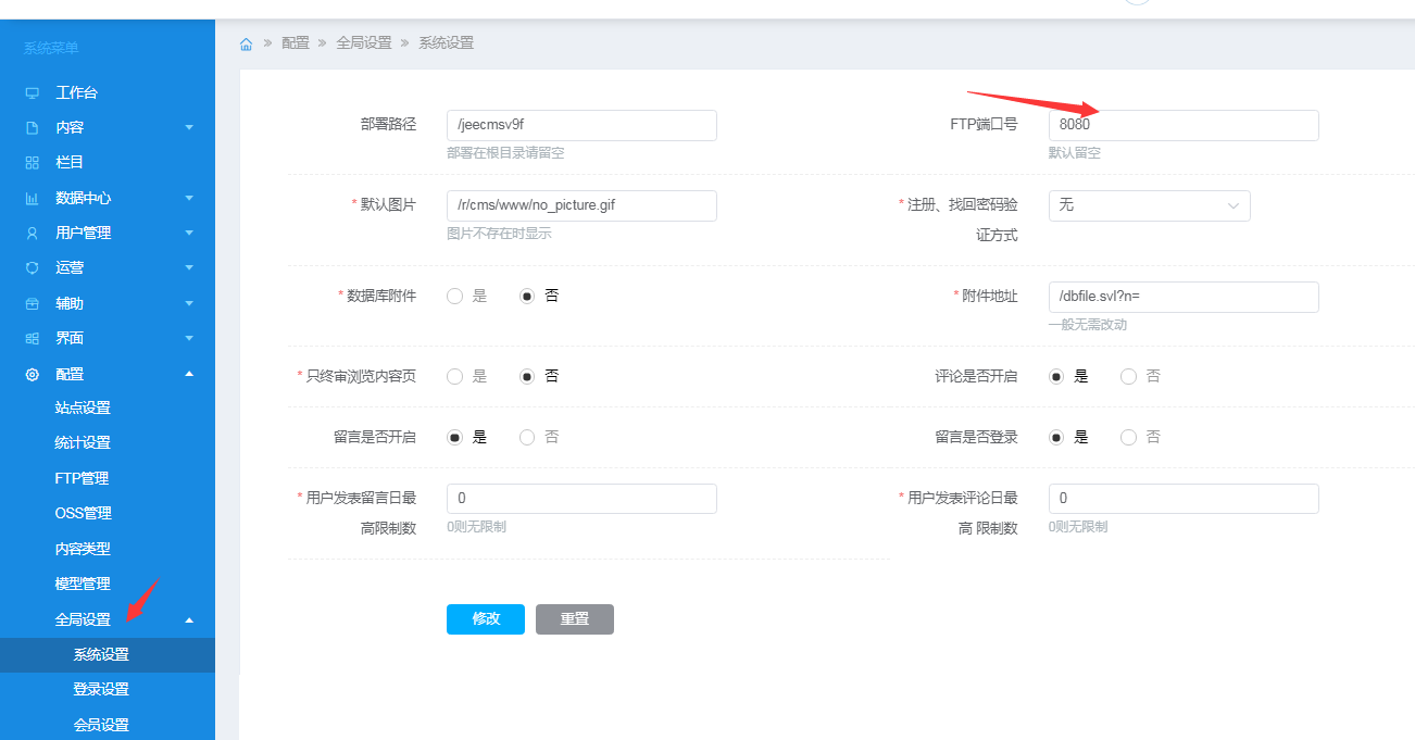 不是,改的全局设置的系统设置那的ftp端口号,把8080改成了自己的端口号 ![]() |