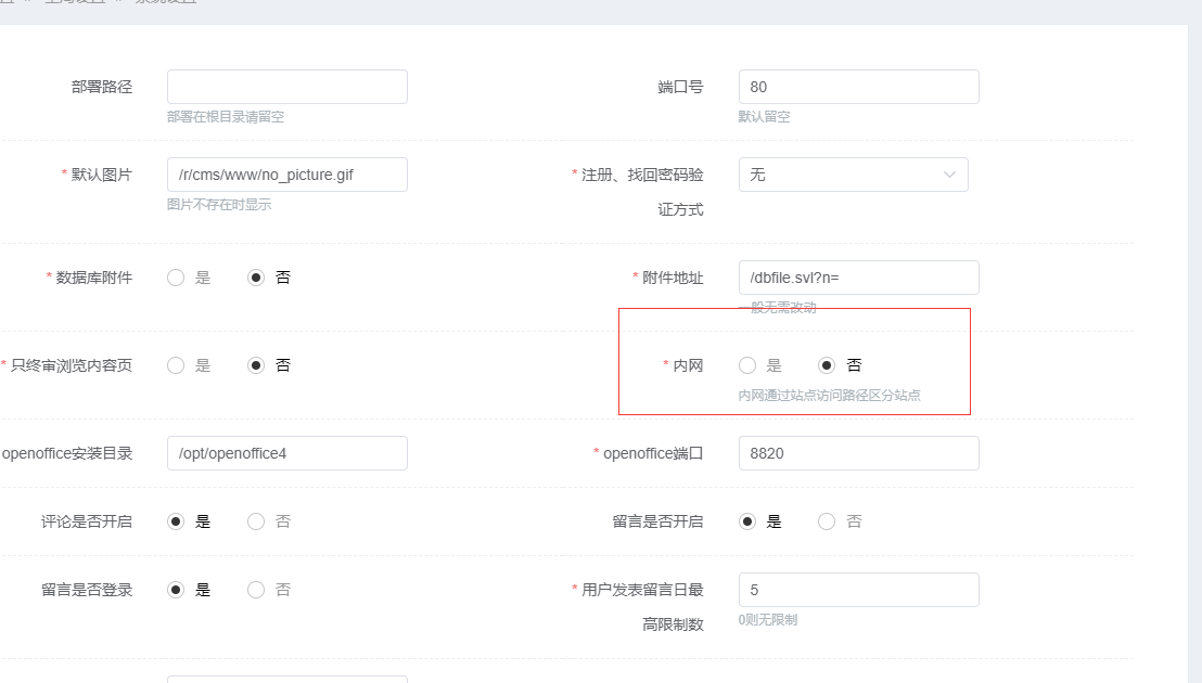 您看下这个 这个内外网的开关功能是只有授权版本才有的 您开源版本没有这个功能默认只能本地部署 只用用本地的ip做域名