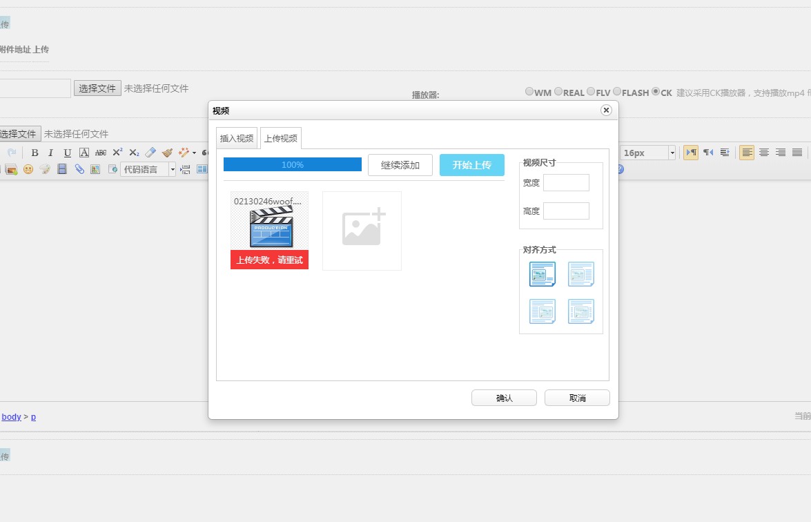 主题 : 内容添加视频失败问题