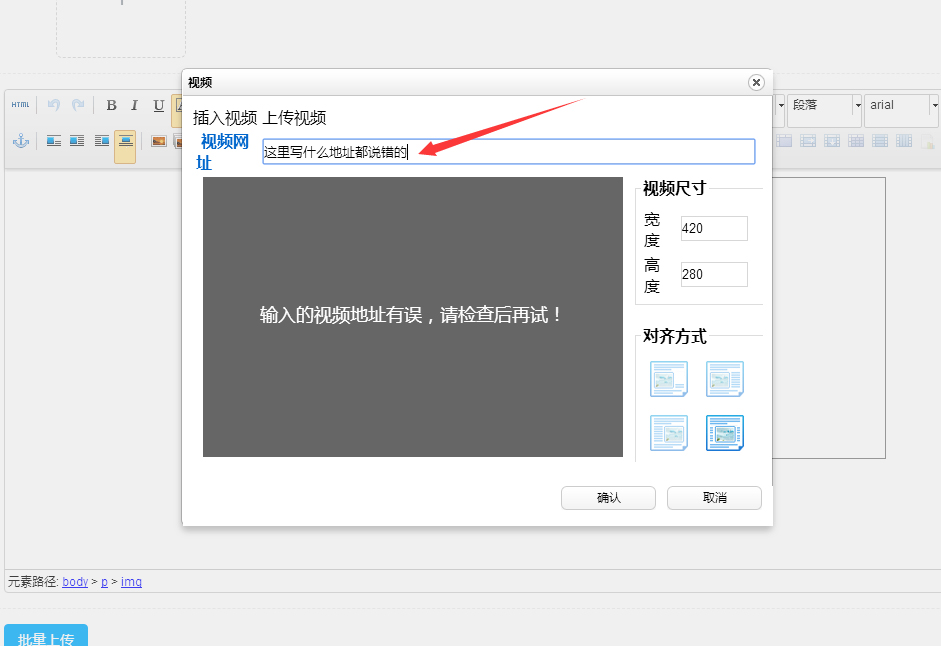 您好 他哪个是需要填视频的详细地址的 您可以试下某些视频网站中使用检索查看下视频的路径在进行填写