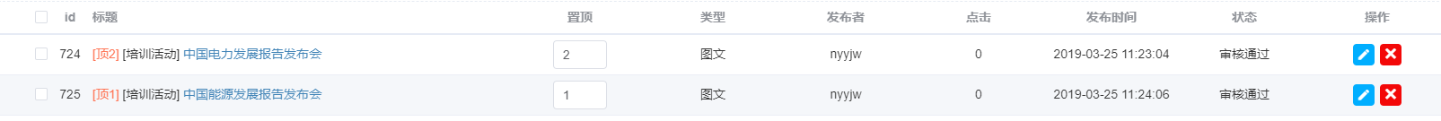 这是后台内容置顶,但是在前台页面展示上这两个置顶的还是在最后,所以置顶不就是让你所置顶的内容在首位