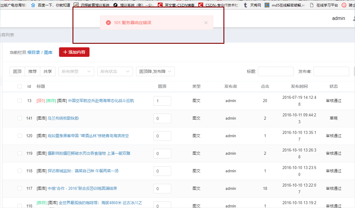 主题 : 在内容复用里,复制一条新闻到其它栏目报错!