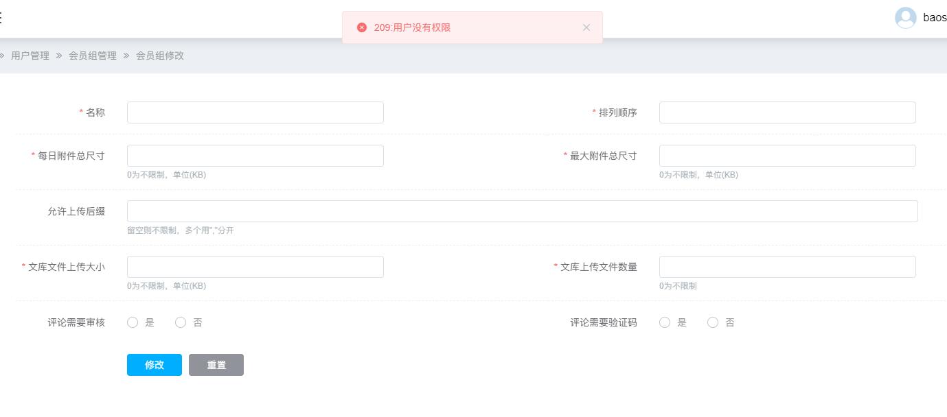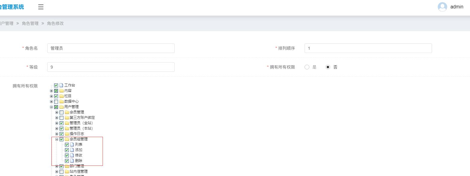 你好,好像问一下,我admin账号给分配的一个管理员操作会员组管理的权限了,但是我用这个管理员账号登录后,修改会员组信息支提示用户没有权限?请问是为什么呢?