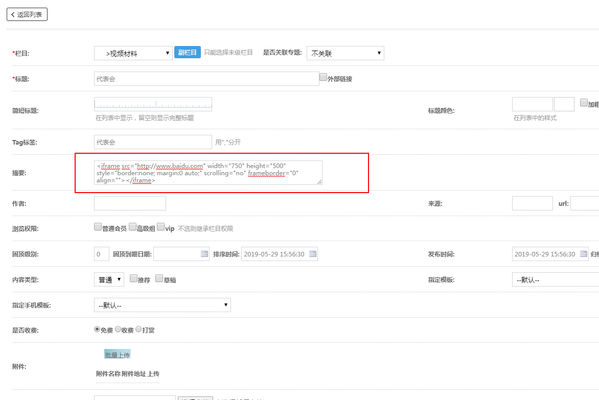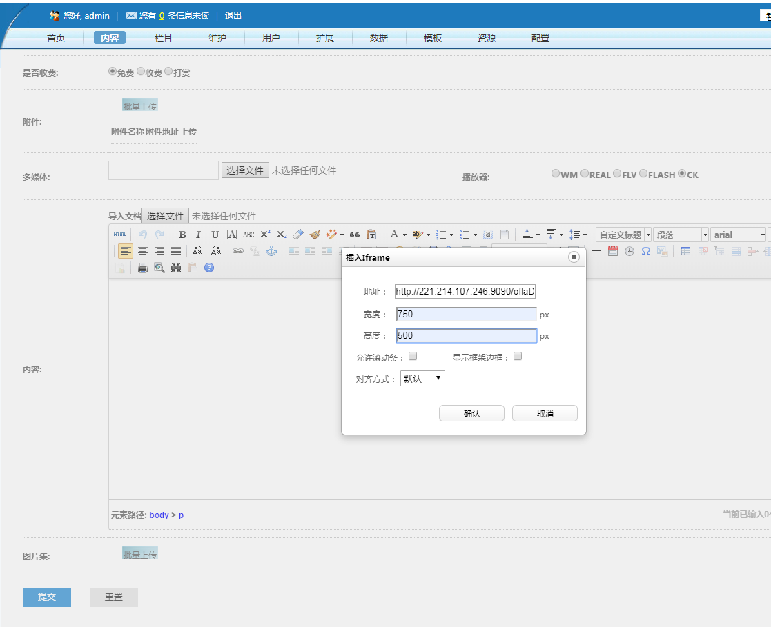 添加的时候,在富文本区输入别的没有事,一加Iframe就不行