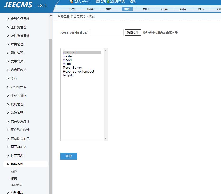 放上了,点了恢复。也重启了。栏目和内容没有任何变化呢。这还有什么需要注意的吗