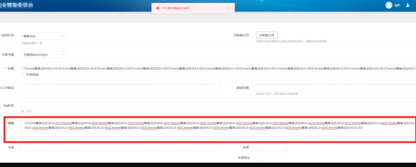 新增筹备动态 必填项 内容及标题输入过多字符,点击提交按钮