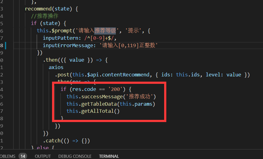 判断推荐里面的值,当登录200这个值就是表示推荐成功