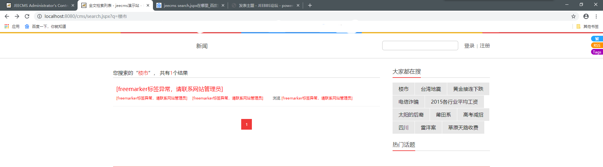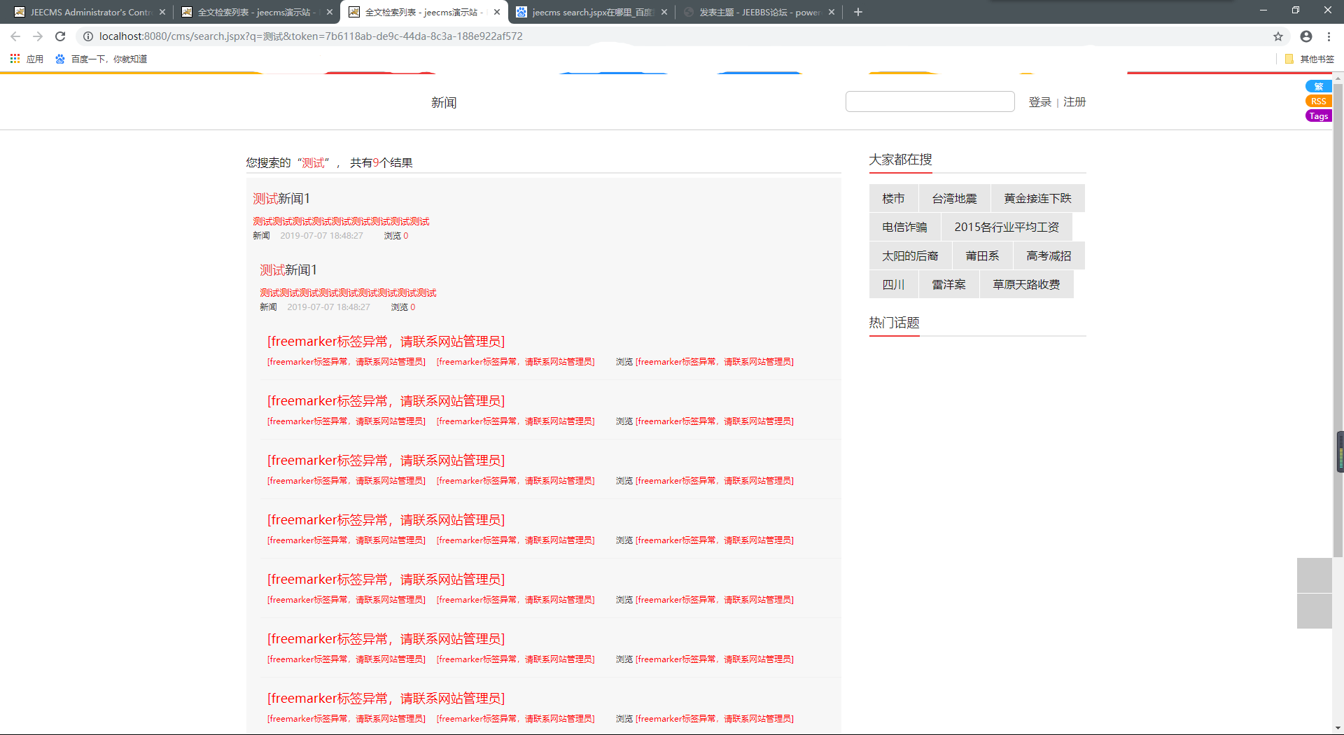 您可以去我们的演示站直接复制下查询结果页的模板去您的项目中修改下 然后您在去项目文件中找到lucene这个文件吧里面的内容都删除 再去后台的全文索引下生成下新的索引就可以了