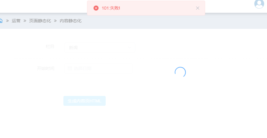 选择一个模板是可以静态化的 现在是客户那边报''101:失败'',然后我这边问题复现,只找到了模板选择默认这一个可能,我让可能选择一个模板再静态化,他还是‘101:失败’,所以我想还有没有别的原因了 |