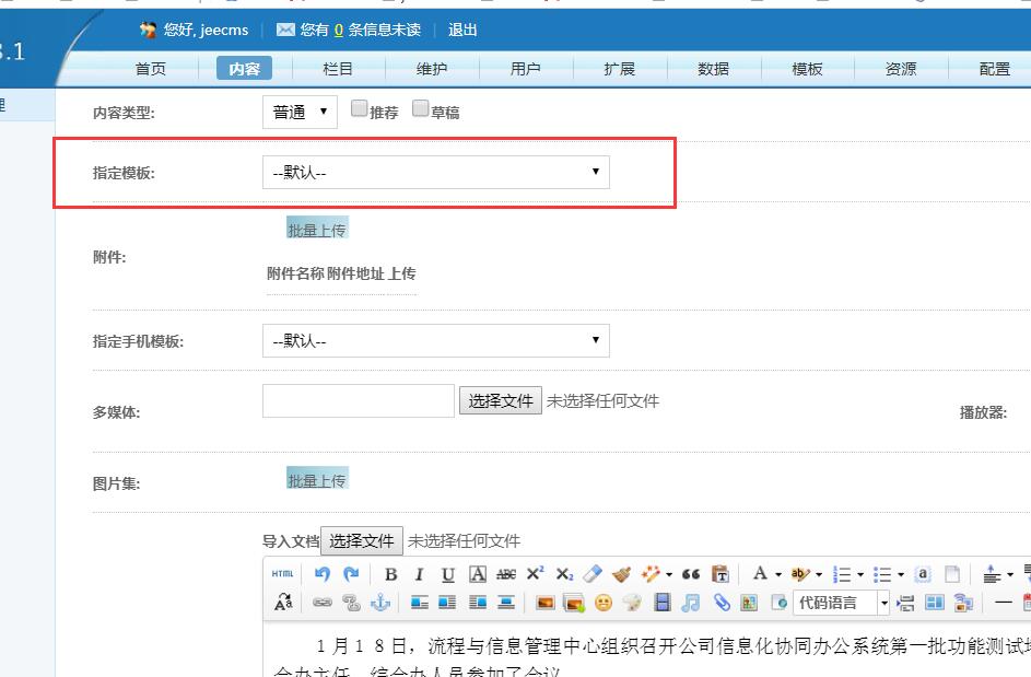 那您就只能去看下您栏目的配置下有一个模板指定的 看下您有指定到content下的对应内容模板吗? 一般如果有的话会在内容中可以展示出来 并选择了默认后就会自动回填的