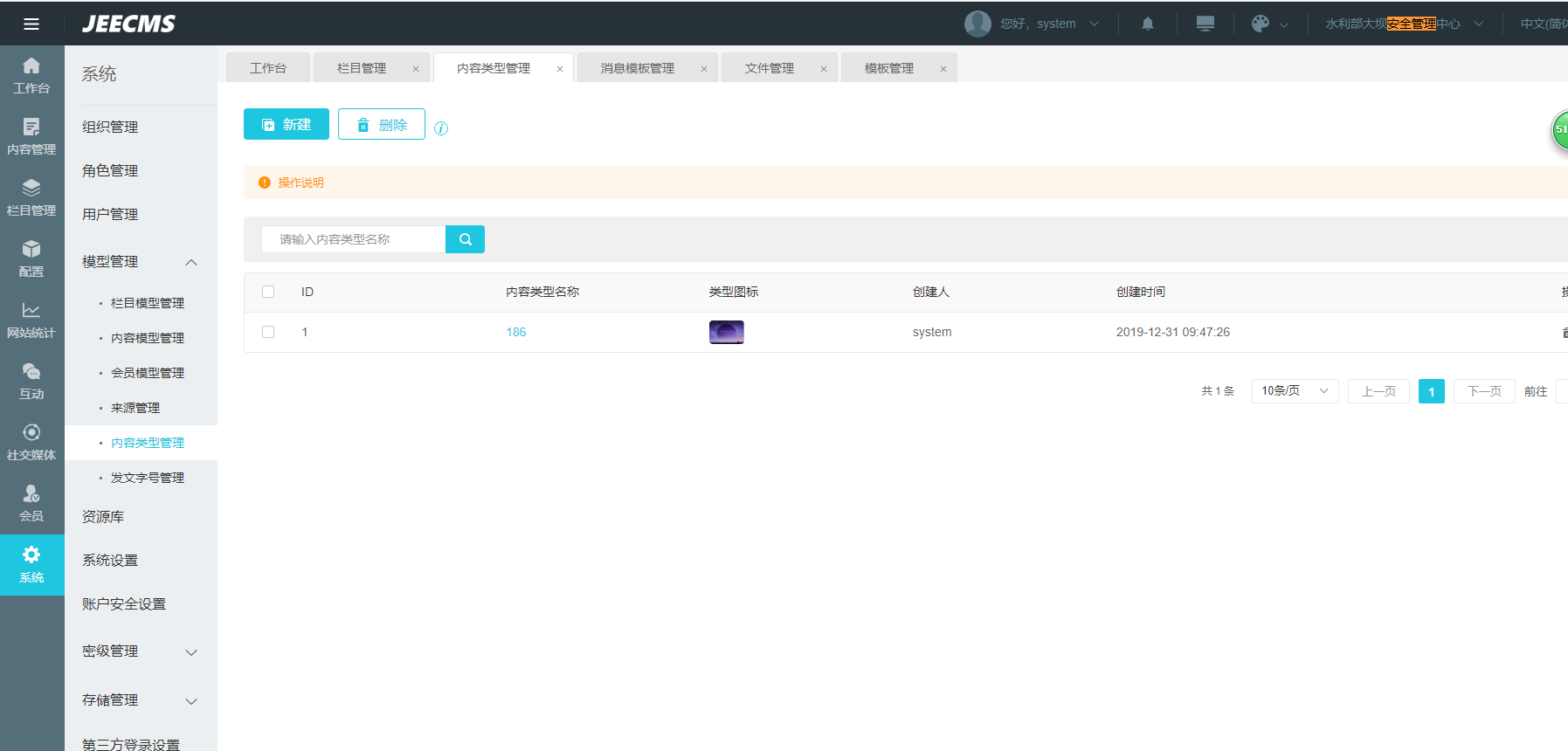 我在系统->内容类型管理,里面添加了186这个类型数据的图片但是不显示