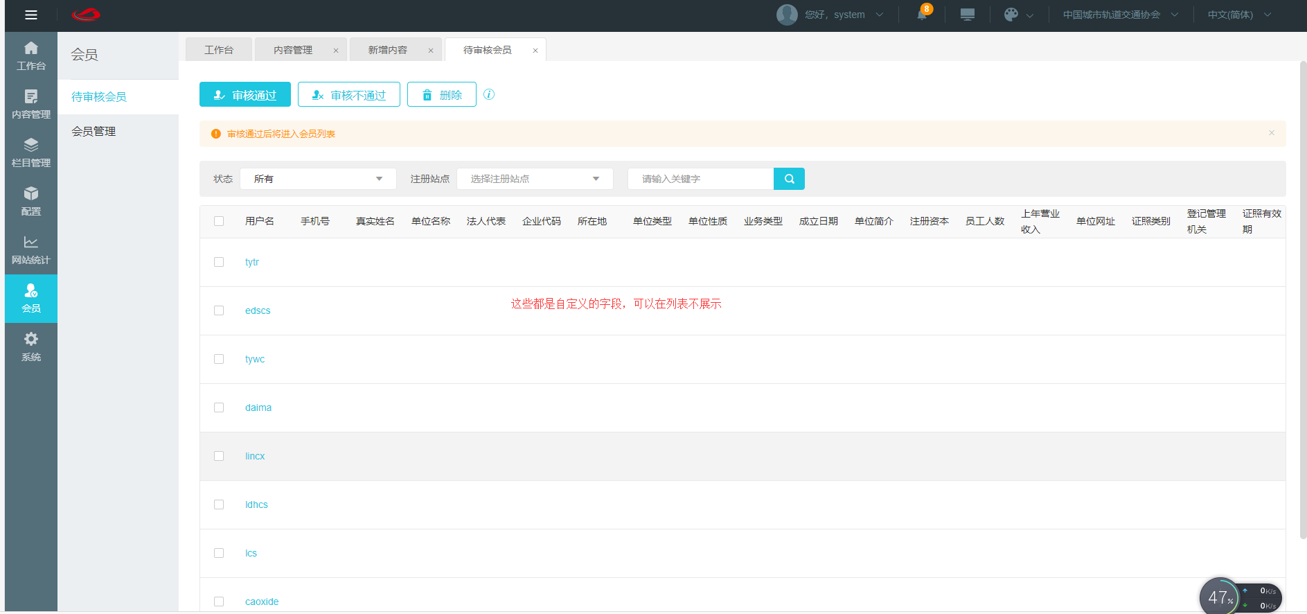 我这个只是想把没用的字段隐藏掉,和会员列表展示一样的就行 |