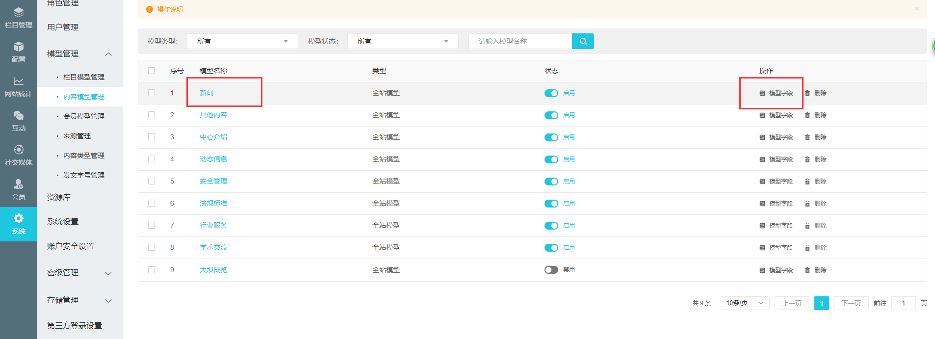 您这个是内容模型啊 我一直是说栏目模型 栏目模型是控制栏目的 内容模型是控制内容的 是2种模型
