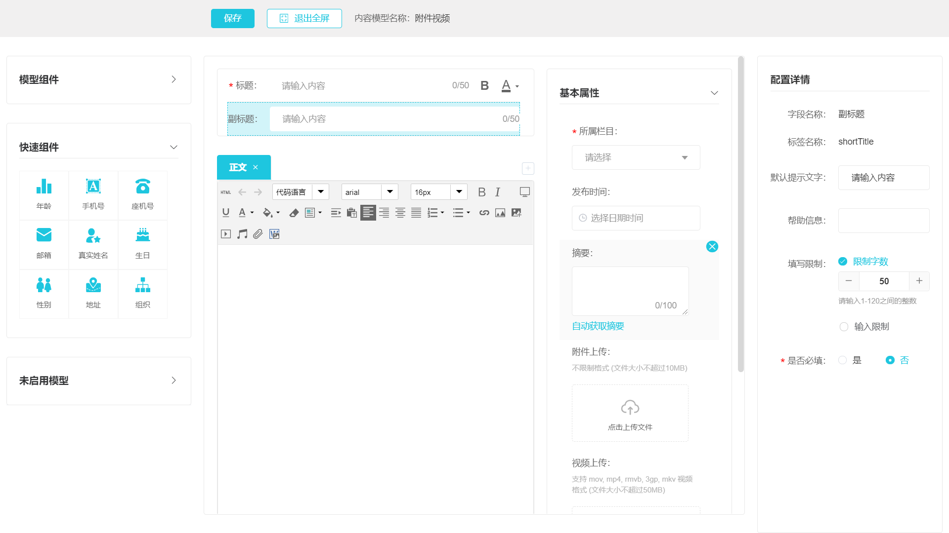 您这个是内容模型的界面啊 我是指您能让我看下发布内容时候的界面吗? 我想看下您的配置