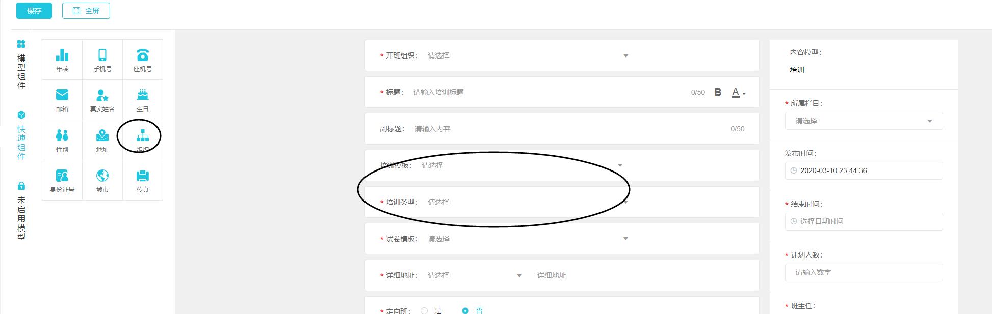 您好 我们组织这个是读取的后台您设置的组织 这个是已经配置好了的 而您要新建的哪个功能字段是要读取什么地方的内容?
