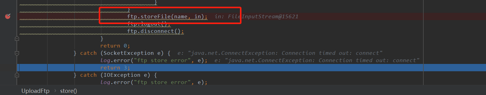 ![]() ![]() ftp对象里面的内容好像是对的,就是在执行storeFile方法会超时 |