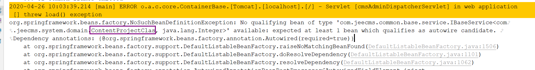 回复第2楼我是新建了一张表,然后添加*类,通过public class ContentProjectParamController extends BaseController<ContentProjectClas, Integer> 使用baseController中的公用方法,启动后端的时候上面的错误,想问添加*类都还需要哪些配置吗?我用的是x 1.2版本的开源代码。