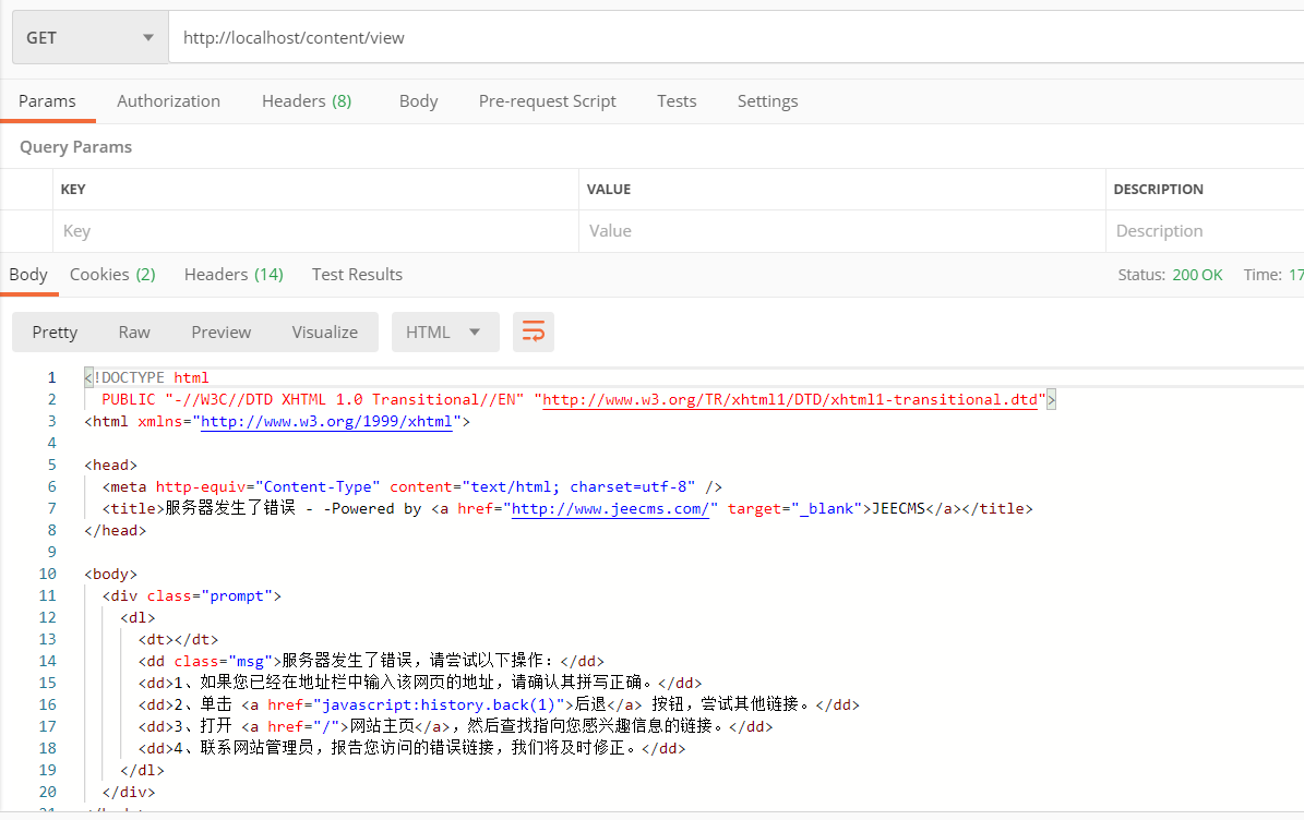 在postman上访问接口返回错误界面