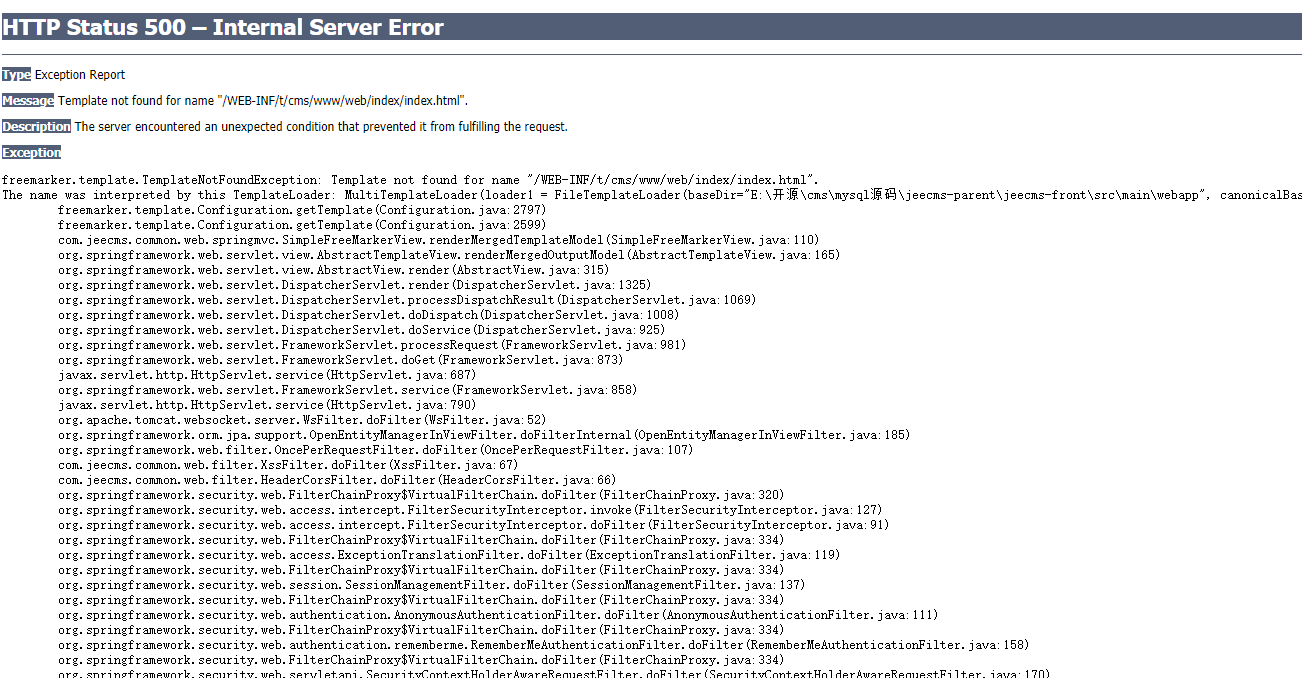运行时 项目 报 这个SimpleFreeMarkerView.java:110 地方错误