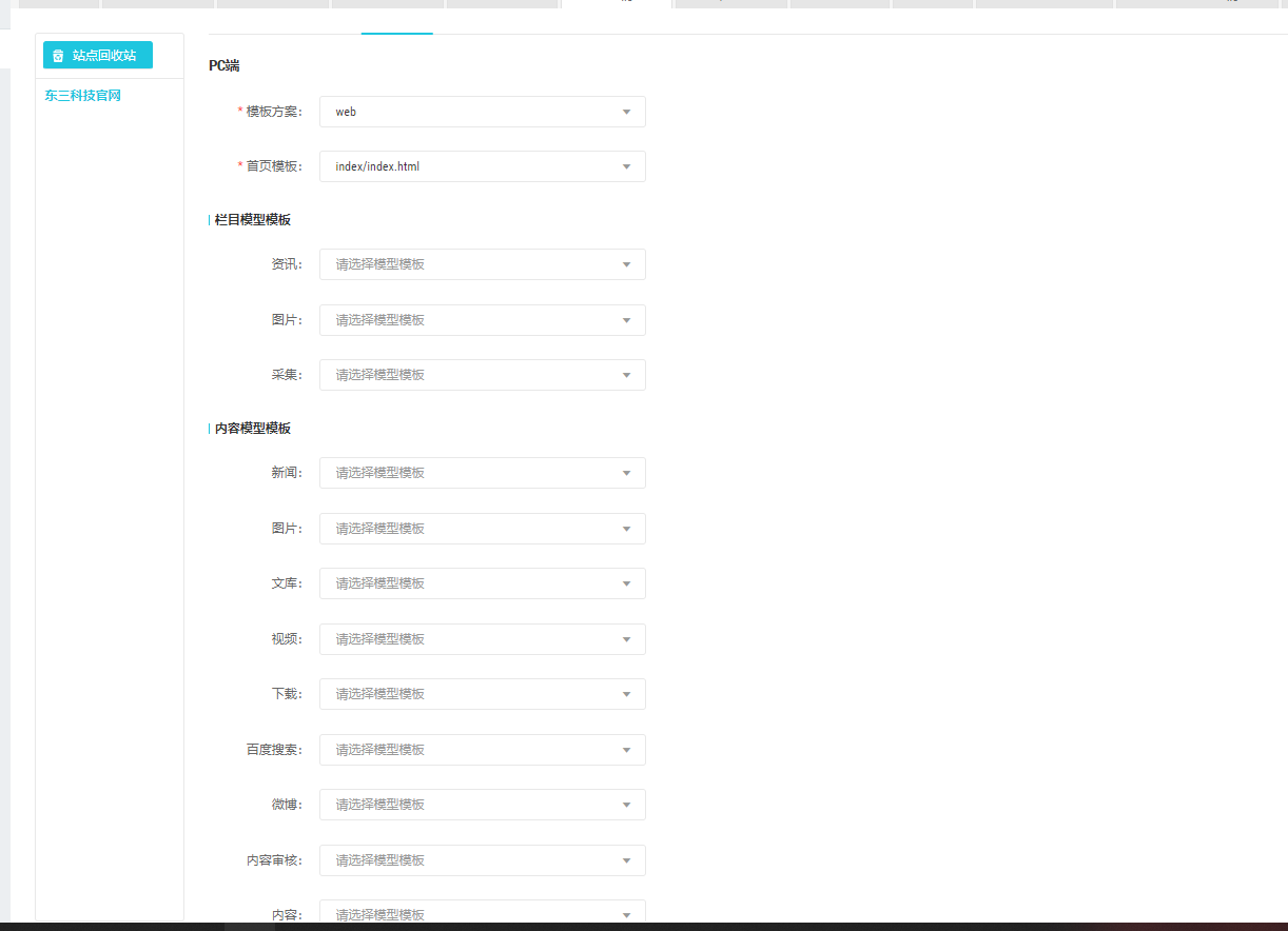 更改的是 站点管理 -- 默认模板配置 -- PC端 模板方法 首页模板 这两个