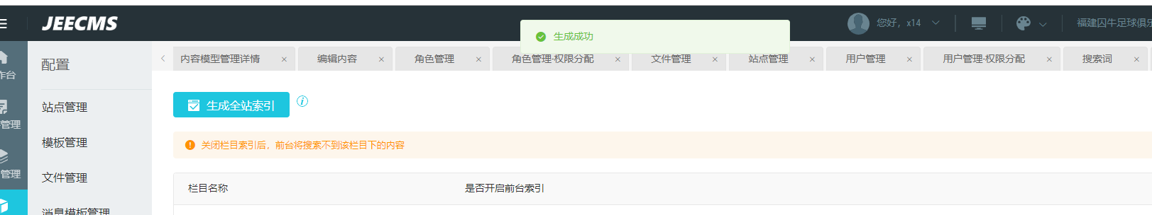 对 点击完 生成全站索引后   现在输入什么都搜索不到了