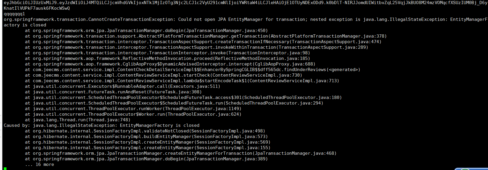 Note: further occurrences of HTTP request parsing errors will be logged at DEBUG level. java.lang.IllegalArgumentException: Invalid character found in method name [0x030x000x00/*0xe00x000x000x000x000x00Cookie:]. HTTP method names must be tokens at org.apache.coyote.http11.Http11InputBuffer.parseRequestLine(Http11InputBuffer.java:432) at org.apache.coyote.http11.Http11Processor.service(Http11Processor.java:502) at org.apache.coyote.AbstractProcessorLight.process(AbstractProcessorLight.java:65) at org.apache.coyote.AbstractProtocol$ConnectionHandler.process(AbstractProtocol.java:818) at org.apache.tomcat.util.net.NioEndpoint$SocketProcessor.doRun(NioEndpoint.java:1627) at org.apache.tomcat.util.net.SocketProcessorBase.run(SocketProcessorBase.java:49) at java.util.concurrent.ThreadPoolExecutor.runWorker(ThreadPoolExecutor.java:1149) at java.util.concurrent.ThreadPoolExecutor$Worker.run(ThreadPoolExecutor.java:624) at org.apache.tomcat.util.threads.TaskThread$WrappingRunnable.run(TaskThread.java:61) at java.lang.Thread.run(Thread.java:748) 20-Jul-2020 14:36:13.701 INFO [main] org.apache.catalina.core.StandardServer.await A valid shutdown command was received via the shutdown port. Stopping the Server instance. 20-Jul-2020 14:36:13.701 INFO [main] org.apache.coyote.AbstractProtocol.pause Pausing ProtocolHandler ["http-nio-8080"] 20-Jul-2020 14:36:13.707 INFO [main] org.apache.catalina.core.StandardService.stopInternal Stopping service [Catalina] 20-Jul-2020 14:36:15.010 WARNING [localhost-startStop-2] org.apache.catalina.loader.WebappClassLoaderBase.clearReferencesJdbc The web application [ROOT] registered the JDBC driver [com.mysql.jdbc.Driver] but failed to unregister it when the web application was stopped. To prevent a memory leak, the JDBC Driver has been forcibly unregistered. 20-Jul-2020 14:36:15.013 WARNING [localhost-startStop-2] org.apache.catalina.loader.WebappClassLoaderBase.clearReferencesThreads The web application [ROOT] appears to have started a thread named [Abandoned connection cleanup thread] but has failed to stop it. This is very likely to create a memory leak. Stack trace of thread: java.lang.Object.wait(Native Method) java.lang.ref.ReferenceQueue.remove(ReferenceQueue.java:143) com.mysql.jdbc.AbandonedConnectionCleanupThread.run(AbandonedConnectionCleanupThread.java:64) java.util.concurrent.ThreadPoolExecutor.runWorker(ThreadPoolExecutor.java:1149) java.util.concurrent.ThreadPoolExecutor$Worker.run(ThreadPoolExecutor.java:624) java.lang.Thread.run(Thread.java:748) 20-Jul-2020 14:36:15.014 WARNING [localhost-startStop-2] org.apache.catalina.loader.WebappClassLoaderBase.clearReferencesThreads The web application [ROOT] appears to have started a thread named [Replication Thread] but has failed to stop it. This is very likely to create a memory leak. Stack trace of thread: java.lang.Thread.sleep(Native Method) net.sf.ehcache.distribution.RMIAsynchronousCacheReplicator.replicationThreadMain(RMIAsynchronousCacheReplicator.java:117) net.sf.ehcache.distribution.RMIAsynchronousCacheReplicator.access$000(RMIAsynchronousCacheReplicator.java:58) net.sf.ehcache.distribution.RMIAsynchronousCacheReplicator$ReplicationThread.run(RMIAsynchronousCacheReplicator.java:389) 20-Jul-2020 14:36:15.015 WARNING [localhost-startStop-2] org.apache.catalina.loader.WebappClassLoaderBase.clearReferencesThreads The web application [ROOT] appears to have started a thread named [Replication Thread] but has failed to stop it. This is very likely to create a memory leak. Stack trace of thread: java.lang.Thread.sleep(Native Method) net.sf.ehcache.distribution.RMIAsynchronousCacheReplicator.replicationThreadMain(RMIAsynchronousCacheReplicator.java:117) net.sf.ehcache.distribution.RMIAsynchronousCacheReplicator.access$000(RMIAsynchronousCacheReplicator.java:58) net.sf.ehcache.distribution.RMIAsynchronousCacheReplicator$ReplicationThread.run(RMIAsynchronousCacheReplicator.java:389) 20-Jul-2020 14:36:15.016 WARNING [localhost-startStop-2] org.apache.catalina.loader.WebappClassLoaderBase.clearReferencesThreads The web application [ROOT] appears to have started a thread named [Replication Thread] but has failed to stop it. This is very likely to create a memory leak. Stack trace of thread: java.lang.Thread.sleep(Native Method) net.sf.ehcache.distribution.RMIAsynchronousCacheReplicator.replicationThreadMain(RMIAsynchronousCacheReplicator.java:117) net.sf.ehcache.distribution.RMIAsynchronousCacheReplicator.access$000(RMIAsynchronousCacheReplicator.java:58) net.sf.ehcache.distribution.RMIAsynchronousCacheReplicator$ReplicationThread.run(RMIAsynchronousCacheReplicator.java:389) 20-Jul-2020 14:36:15.016 WARNING [localhost-startStop-2] org.apache.catalina.loader.WebappClassLoaderBase.clearReferencesThreads The web application [ROOT] appears to have started a thread named [Replication Thread] but has failed to stop it. This is very likely to create a memory leak. Stack trace of thread: java.lang.Thread.sleep(Native Method) net.sf.ehcache.distribution.RMIAsynchronousCacheReplicator.replicationThreadMain(RMIAsynchronousCacheReplicator.java:117) net.sf.ehcache.distribution.RMIAsynchronousCacheReplicator.access$000(RMIAsynchronousCacheReplicator.java:58) net.sf.ehcache.distribution.RMIAsynchronousCacheReplicator$ReplicationThread.run(RMIAsynchronousCacheReplicator.java:389) 20-Jul-2020 14:36:15.017 WARNING [localhost-startStop-2] org.apache.catalina.loader.WebappClassLoaderBase.clearReferencesThreads The web application [ROOT] appears to have started a thread named [Replication Thread] but has failed to stop it. This is very likely to create a memory leak. Stack trace of thread: java.lang.Thread.sleep(Native Method) net.sf.ehcache.distribution.RMIAsynchronousCacheReplicator.replicationThreadMain(RMIAsynchronousCacheReplicator.java:117) net.sf.ehcache.distribution.RMIAsynchronousCacheReplicator.access$000(RMIAsynchronousCacheReplicator.java:58) net.sf.ehcache.distribution.RMIAsynchronousCacheReplicator$ReplicationThread.run