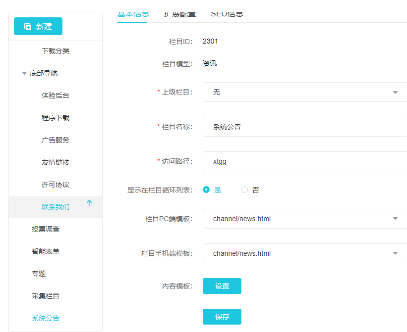 在栏目管理配置的