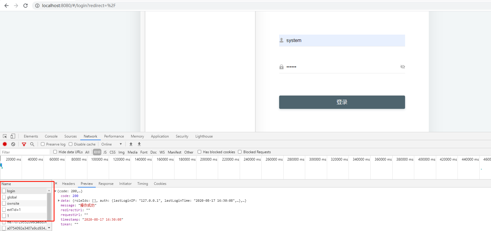 就是您说的哪个api接口 要改为您正常项目的前台访问地址的 您试下打开f12看下哪个登入的接口请求是什么状态的