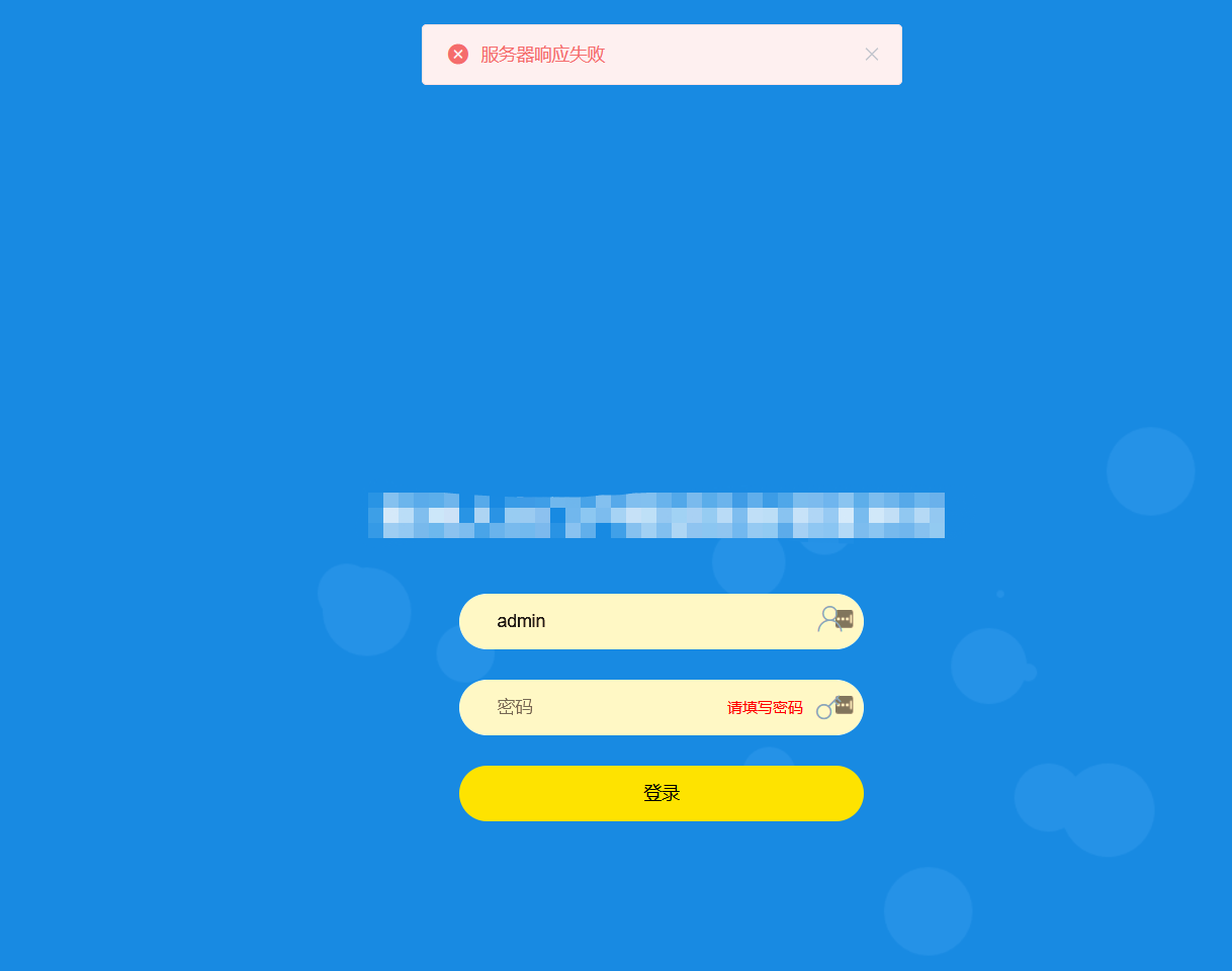 ![]() 后台访问登陆页面可以看到,然后输入账号密码就提示:服务器响应失败 |