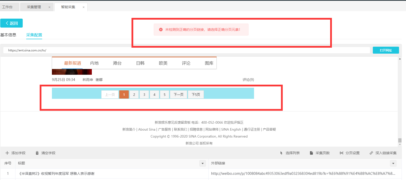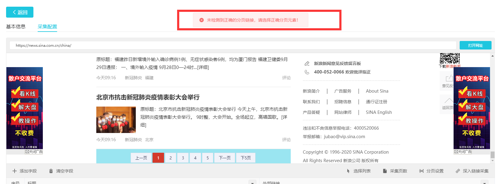 有可能是您这个采集页面 和我们的采集规则不相同 您可以试下新浪新闻的页面