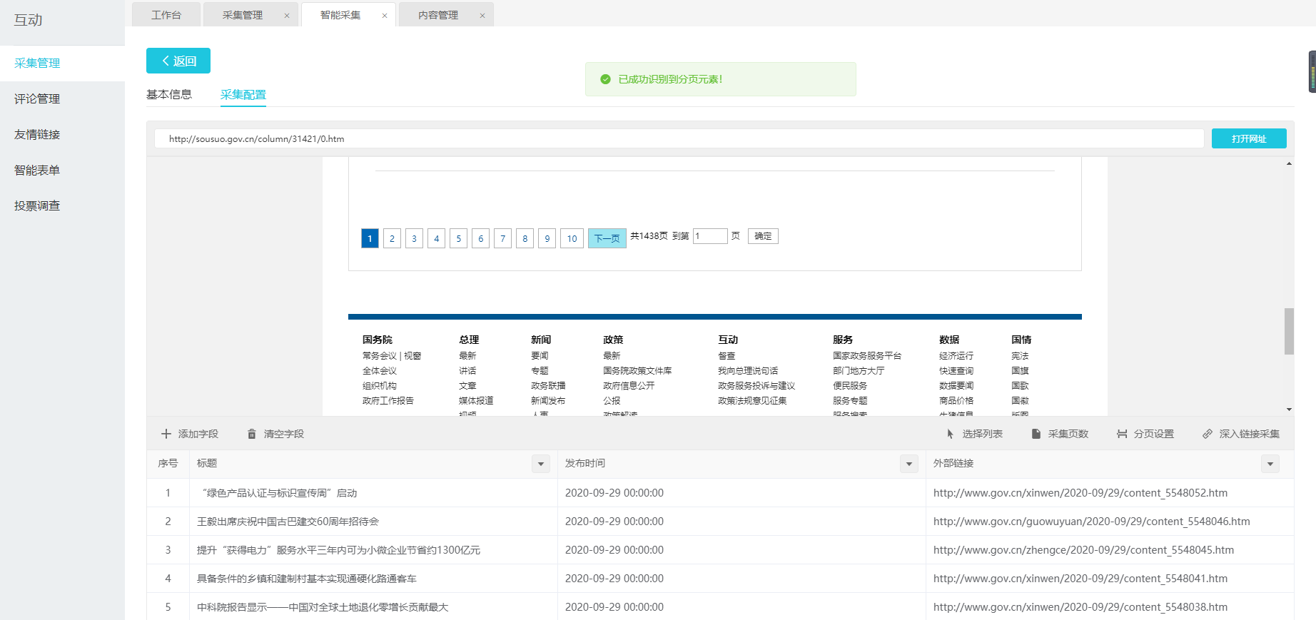 中国政府网的 而且在和您说下 采集的时候是点击下一页的哪个功能获取分页的标签