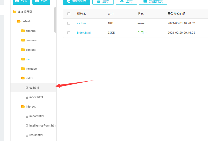 将您的模板导入模板管理的defult目录,或者新建个目录 |