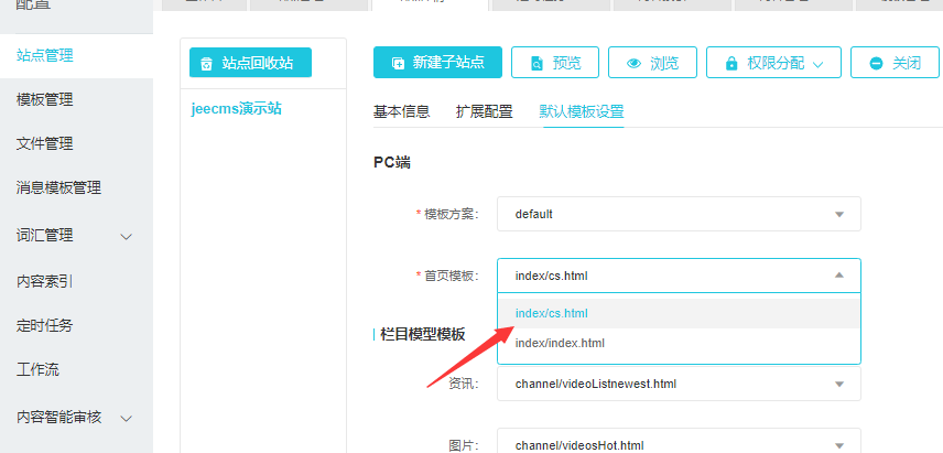 回复第4楼 站点管理 pc端 首页模板 依然是只有index/index.html这一个选项呀