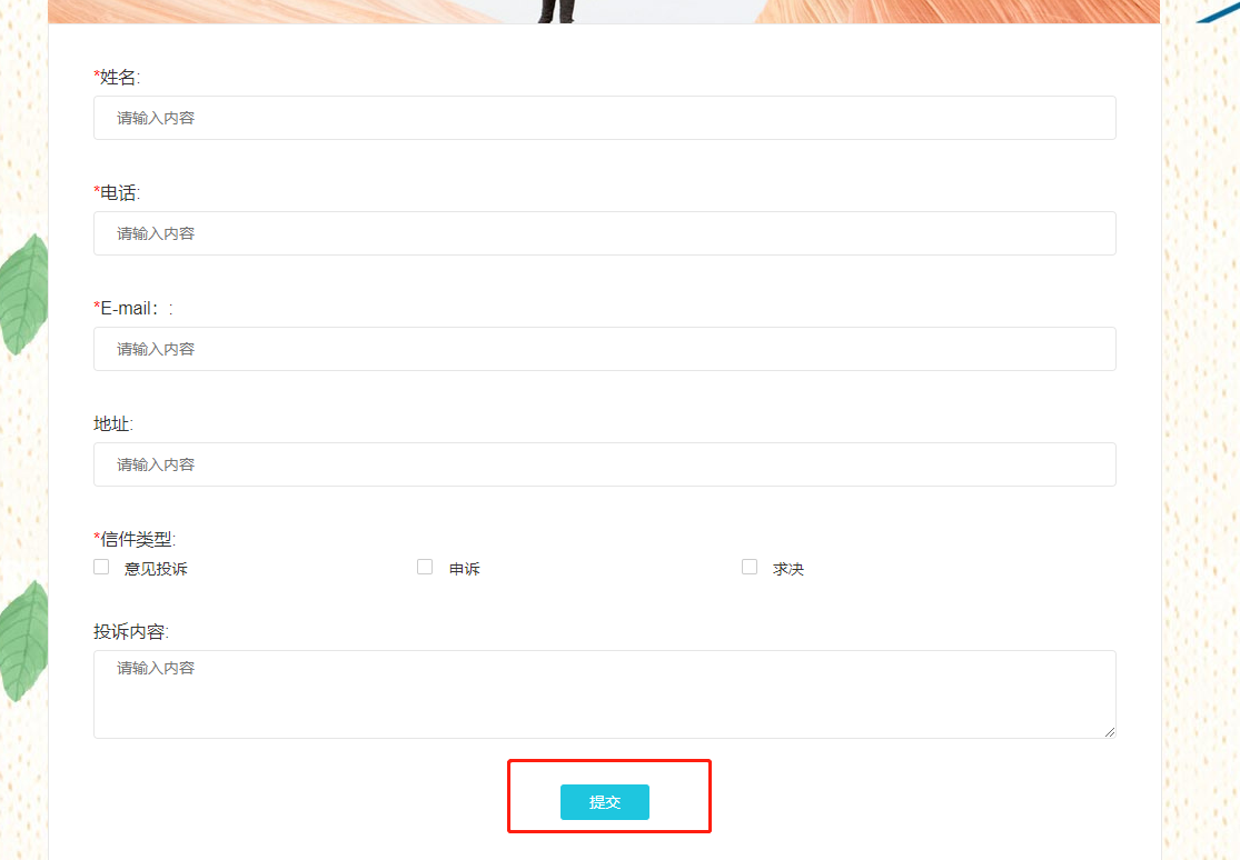 网页投诉建议 点击提交时,请求的接口路径是什么?