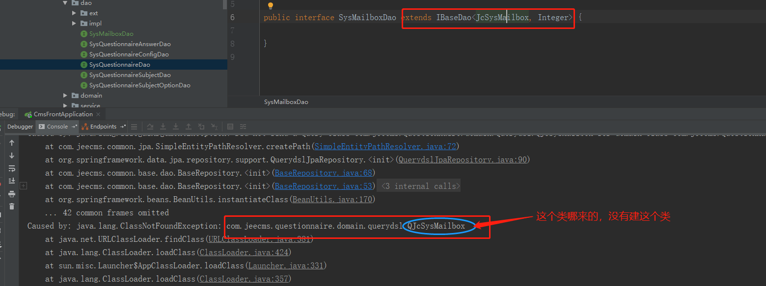 主题 : 添加Dao接口后启动报错