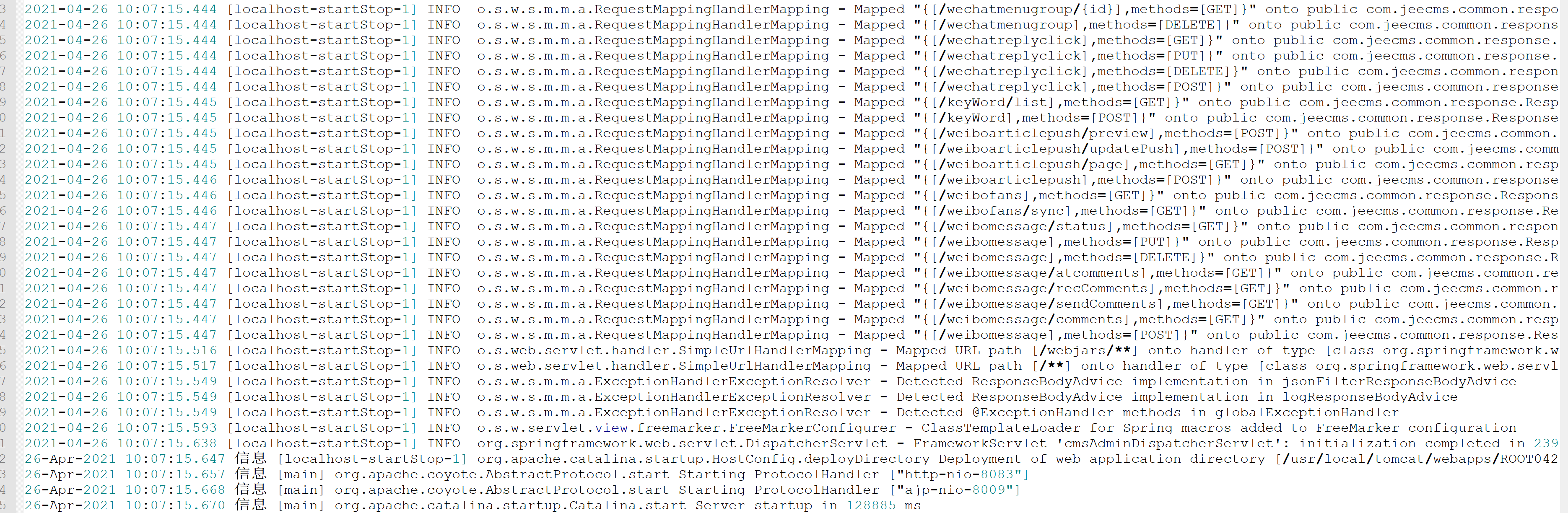 场景是这样的,公司停电服务都断开了,重新启动,日志显示启动成功了,但是页面打不开,日志如下